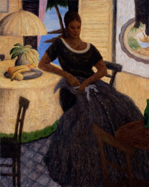 Iwo Zaniewski created “Southern Islands Seamstress” in oil. This artwork invites us to consider the intersections of labor, identity, and representation within the context of island life. The seamstress, a woman of color, is depicted not in the act of labor, but in a moment of repose, suggesting a narrative that moves beyond stereotypical portrayals of working-class women. The vibrant colors and the lush, tropical setting create a sense of place, rooting the figure in a specific cultural and geographical context. Yet, her gaze and posture evoke a sense of introspection, hinting at the complexities of her inner world. Zaniewski captures a quiet, contemplative moment, a pause that allows us to reflect on the seamstress’s personal history and her connection to the landscape. This painting offers a nuanced perspective on the lives and experiences of women in the Southern Islands, inviting viewers to contemplate their stories and identities.