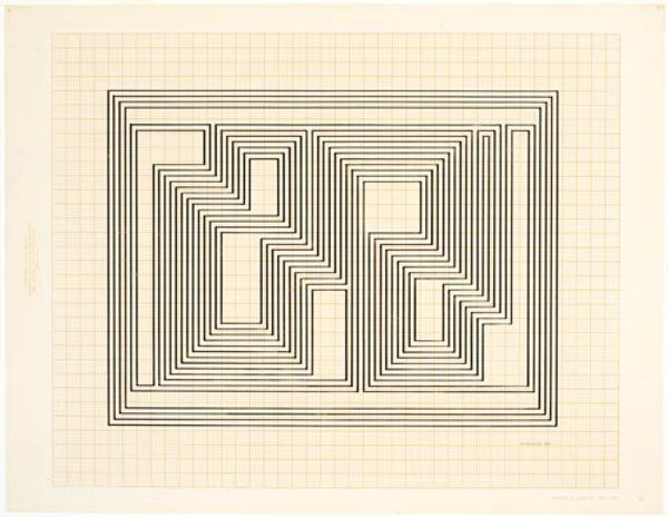 Curator: Carl Andre’s "Drawing for ‘The Perfect Painting’" presents a compelling geometric structure on graph paper. Editor: It looks like a blueprint for a minimalist ziggurat, almost austere in its presentation. Curator: Indeed, the isometric grid dictates the form, creating a calculated, serial composition. The subtle shading imbues the structure with a sense of depth. Editor: The grid feels crucial here. It speaks to the industrial processes underlying Andre’s sculptural work, highlighting the inherent labor of creation. Curator: The lack of overt painterly gesture focuses our attention on the underlying logic and the pre-existing structure of the grid. Editor: And also the very means of production; a simple drawing, a common material, made monumental through its implication of larger, spatial concerns. I appreciate the demystification. Curator: It’s a testament to how simple forms, meticulously arranged, can achieve a profound visual impact. Editor: It really allows us to reconsider the relationship between drawing, planning, and the physical manifestation of art.