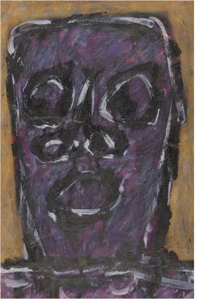 Oleg Holosiy made this "Self Portrait in Green" with paint, sometime before 1993. It's amazing how a limited palette can be so expressive; the way he's layered greens and blues, it feels less like a portrait and more like a presence emerging from a dream. The paint handling is so direct. See how the strokes aren't blended, but kind of sit on top of each other, creating this slightly agitated surface? And that touch of yellow, right under the eye, like a spark of unexpected energy. It's these little moments that make the painting feel so alive. The texture almost vibrates, drawing you in, making you feel like you're not just looking at a face, but experiencing a mood. This painting reminds me a little of Francis Bacon. There's a similar interest in capturing the raw, unfiltered self, and a willingness to let the paint do its thing. Ultimately, it's a reminder that painting is as much about feeling as it is about seeing, and that a portrait can be a window into the soul.