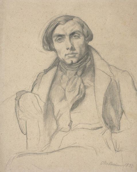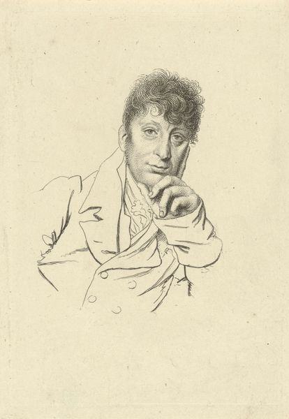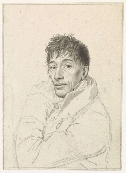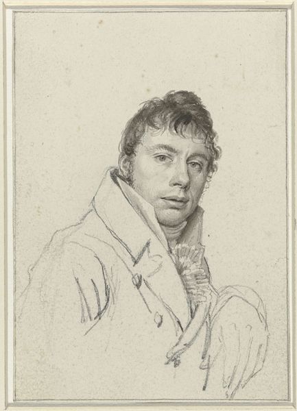 Editor: This is Hendrik Willem Caspari’s "Portret van Hendrik de Flines," a pencil drawing from the late 18th or early 19th century. It feels surprisingly modern for a portrait from that time, almost like a quick sketch. What catches your eye? Curator: I'm immediately drawn to the deliberate choice of pencil as a medium for portraiture during this period. The accessibility and relative low cost of pencils, compared to oils or even fine charcoal, signals a shift. What kind of patron commissioned it? What’s its function – a study, or intended for display? Was the sitter a member of the mercantile class rather than the aristocracy? Editor: I’m not sure. What would that context suggest? Curator: If so, this seemingly simple portrait embodies a fascinating intersection of class, labor, and artistic practice. The pencil marks themselves – look closely – are they hurried, reflecting the demands of commerce perhaps? Or carefully considered, elevating the medium through meticulous craftsmanship? Editor: You’re right, there’s an interesting tension. It feels both immediate and studied. Curator: And think about the paper itself, likely mass-produced. How does the artist elevate this common material to create something unique? What challenges does the artist face by this combination of material and intention? Editor: That’s a side of portraiture I hadn’t considered before – the social and economic implications of the materials. It adds a whole new layer to my understanding. Curator: Precisely! By focusing on the materials and production, we unlock narratives that traditional art historical approaches often overlook. I never thought about the paper either!