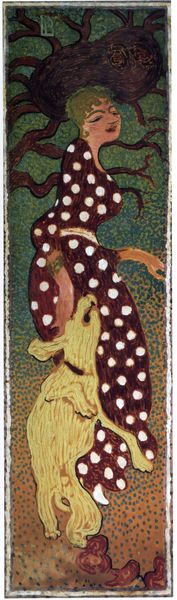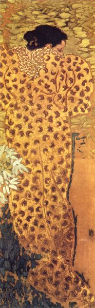 This detail of Hygieia, from Gustav Klimt’s University of Vienna Ceiling Paintings, shows a figure draped in a vivid, patterned red and yellow robe, entwined with a golden snake. The process feels so apparent here, like each stroke is a decision, a step in an elaborate dance. The texture is incredible, isn’t it? Look at how the colors vibrate against each other; the red and yellow aren’t just colors but palpable surfaces. The robe, with its vertical stripes and geometric patterns, seems almost like a screen, a veil over the body. I love how the spiral of the snake echoes the curves of her body, creating a sense of movement and energy. It’s as if Klimt is not just painting a figure but conjuring a whole world. Thinking about his other works, like *The Kiss*, I see a similar obsession with pattern and surface, a desire to turn the human form into something decorative, almost abstract. But unlike Egon Schiele, his contemporary who twisted the figure into new and fascinating shapes, Klimt’s ambition was to pattern and decorate his figures. Art isn't about fixed answers, but endless questions and possibilities, right?