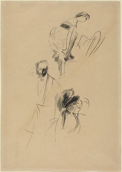 Editor: This is "Moritzburger Badende im Gestrüpp," or "Bathers at Moritzburg in the Thicket," an ink drawing by Ernst Ludwig Kirchner from 1910. It's so sparse, almost like a shorthand for bodies in a landscape. What draws your eye in this piece? Curator: The seeming casualness, even the roughness, is deceptive. Kirchner's Expressionist circle, Die Brücke, consciously rejected academic traditions. They wanted art to be immediate, a visceral expression of modern experience. Where and how do you think they succeeded, or failed, with these objectives? Editor: Well, there's an unfinished quality to the drawing that reflects that immediacy, like he's capturing a fleeting moment. It feels anti-establishment, definitely not the polished portraits you’d find in an official academy. It also, strangely, feels unfinished? Curator: Precisely! This deliberately "unfinished" aesthetic was a key strategy. The figures, raw and unidealized, challenge conventional representations of beauty and the body. Consider the socio-political context: turn-of-the-century Germany was rapidly industrializing, creating new social anxieties and desires for authentic experience. Kirchner's bathers are part of this desire. Do you see this rejection of traditions being followed by any current movements today? Editor: Maybe in some street art or even digital art? Where artists prioritize the raw impact and commentary over technical perfection. It’s interesting to think how that rebellious spirit carries through time. Curator: Absolutely. Kirchner's "Bathers" offer a window into the avant-garde's project: using art as a tool to challenge bourgeois norms and grapple with the complexities of modernity. We still feel those ripples today. Editor: I never thought of it that way. Thanks to this perspective, I better appreciate how this quick sketch challenges traditions and embodies a socio-political context!