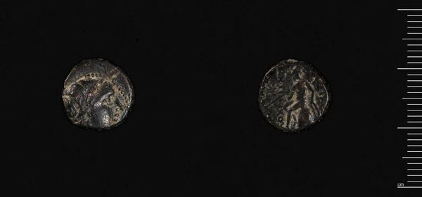 Curator: Here we see a coin of Antiochos I Soter of Syria, likely minted in Antioch itself. It’s a small piece, only 2.15 grams. Editor: It feels incredibly weighty despite its size. The patina speaks volumes about the centuries it has survived. Curator: Indeed. Coins like this are not just currency; they’re tools of propaganda. Depicting the ruler's image helped solidify his authority. Editor: Absolutely, and the symbolic power of that image is significant. What stories of power and legacy did they hope to project through this figure? Curator: These coins also facilitated trade and economic activity within the Seleucid empire, connecting disparate populations through a shared monetary system. Editor: So it represents both the tangible and the symbolic – commerce and control, all wrapped up in one small object. Curator: Precisely. It's a fascinating look at the economics and politics of the ancient world. Editor: A tiny artifact that holds huge cultural echoes.