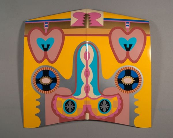 Elizabeth Murray made 'Careless Love' from an unknown date, using paint on canvas, or maybe wood, who knows? The colors in this piece are like a faded memory, all blush pinks and mellow yellows, like an old photograph. The forms are outlined, but not really contained, they bleed into each other, which is something I really love. The mark making feels like a puzzle, and the composition reminds me of a painting being smashed and reassembled. Take a look at that small square area towards the middle, that dark blue against the faded pink. It's like a tiny window into another world. The physicality of the painting is interesting, and the surface is uneven, a little bumpy, which gives it a handmade feel. It reminds me of some of the early cubists, Braque and Picasso, who were also playing with form and space in radical ways. Ultimately, 'Careless Love' is a reminder that art is always a conversation, an ongoing exploration of ideas and possibilities.