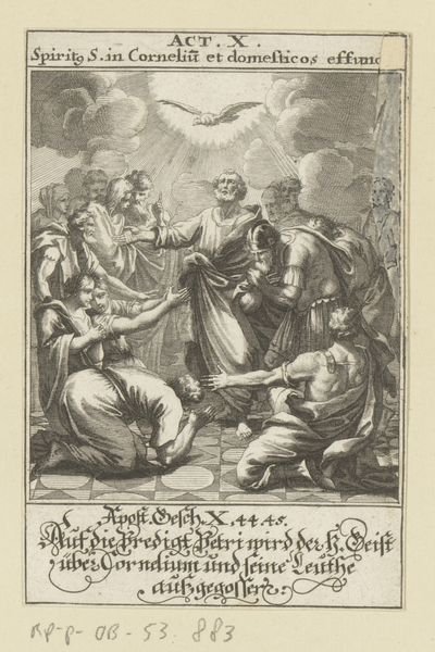 Editor: This engraving, "Brede en de smalle weg," or "The Broad and Narrow Road," by Cornelis Huyberts, dated 1704, is incredibly detailed. The allegorical figures are compelling, but I'm initially struck by the stark contrast between the two paths depicted. How should we interpret this piece through the lens of its time? Curator: This image vividly captures the religious and social anxieties of the early 18th century. Consider the visual rhetoric: the broad road leads to earthly pleasures, symbolized by the debauchery and chaotic figures, a path widely travelled yet ultimately destructive. How does that gate, leading to chaos, strike you in comparison to its counterpart? Editor: Well, it's much more dramatic, certainly. The narrow road's gate is quieter, with just a few figures on a tranquil path toward what appears to be salvation. It seems much less crowded and imposing than the broad path. Curator: Exactly. Huyberts is playing with ideas about piety and morality as powerful cultural forces. These images, popular at the time, reinforced societal expectations through religious and moral teaching. This was less about personal faith, perhaps, and more about how imagery dictates, and perpetuates, cultural norms, don't you think? Editor: That's an interesting way to consider it. It frames the choice between paths as almost a social and political statement, influencing how people behave. Curator: Precisely. What's particularly insightful is understanding the politics of imagery here, especially within the context of Dutch society during this era and how prints served as public educators. Editor: So, it's not just about good versus evil but also about conformity versus societal collapse? I'll certainly view prints from this period differently from now on. Thank you for shining a light on these less visible factors!
