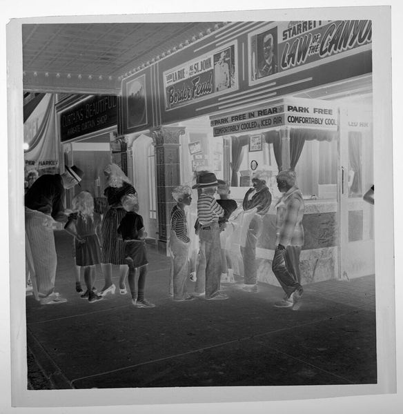 Editor: This vibrant photograph, Jack Gould's "Untitled (colorfully decorated party on outdoor patio)," captures a lively gathering. The sheer number of paper lanterns and partygoers create a sense of joyous chaos. What kind of story do you think this image is trying to tell, or perhaps hint at? Curator: It whispers of forgotten celebrations, doesn't it? The slightly faded colors give it a nostalgic feel, like a cherished memory trying to resurface. I get a sense of community, of people coming together to celebrate something special. Maybe it's the simple joy of being together. What do you make of the somewhat obscured figures? Editor: They definitely add an air of mystery! It's like we're peering into someone else's personal history. Curator: Exactly! It prompts us to fill in the blanks, to imagine the sounds, the laughter, the shared moments. It's less about what is there and more about what could be. Editor: I never thought of it that way. Seeing it as a fragment of a memory is fascinating. Curator: Art often holds up a mirror, reflecting not just the world, but ourselves within it.