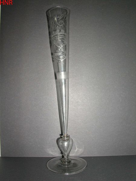 This is a glass seal, made in the 19th century by the New England Glass Company. Note the elegant elongated form and the spiraling threads of color encased within clear crystal. The multifaceted top, cut like a gemstone, gives way to a sleek, almost liquid stem. The formal structure here isn't merely decorative; it speaks to broader themes of transparency, movement, and containment. The encased threads, frozen in their perpetual swirl, suggest a tension between the static and the dynamic. It is reminiscent of the Romantic era's fascination with capturing transient moments. The seal's clarity invites a semiotic reading, where transparency becomes a signifier for honesty or purity, a valued quality in epistolary exchange. Consider this seal as not just an object of utility, but a signifier of social values and aesthetic sensibilities. Its form elevates a simple tool to an art object, embodying the era's ideals of refined beauty and subtle communication.