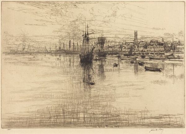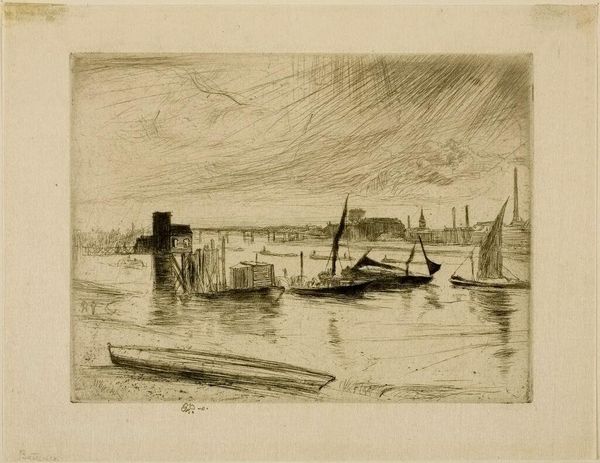 James McNeill Whistler made this etching, "Battersea Dawn," sometime in the late 19th century, rendering an industrial waterscape in understated tones. Whistler was an American expatriate who spent much of his career in London. His etchings are subtle and atmospheric, like this one. But we can easily forget that etchings like this played an important role in the art market of their time. Whistler made many views of London, especially the River Thames, and sold them for moderate prices to a growing middle class. He was one of a number of artists who took advantage of new commercial galleries that catered to new collectors with less disposable income than the traditional aristocratic patrons of art. The Thames views are thus a kind of industrial landscape made specifically for middle-class consumption. Art historians study dealers' records, exhibition reviews, and artists' correspondence to understand the relationship between an artwork like this and the economic and social conditions of its time.