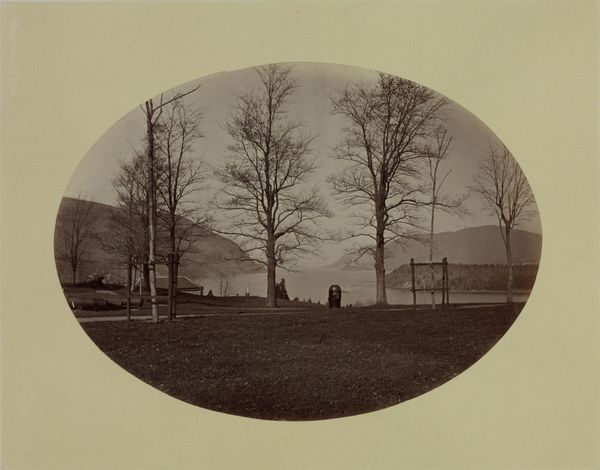Curator: This is George Kendall Warren's photograph, titled "Old Harvard Yard (Harvard, Hollis, Stoughton and Holworthy Halls)." Editor: It's quite somber, isn't it? The stark trees really dominate the scene, almost obscuring the buildings. Curator: It's a portrait of institutional space, framing Harvard's architecture through the lens of its natural environment. The framing itself invites us to consider its position in history. Editor: And the technical process itself, the photographic print, involved specific materials, labor, and a certain level of consumption to produce this image. This material reality is key. Curator: Absolutely, and the composition makes you reflect on the weight and prestige associated with these buildings, which represent centers of power. Editor: Yes, but I also see the materials used to construct the buildings and the photographic print—a reminder of the tangible processes and resources behind institutional imagery. Curator: Seeing it in this light gives me a renewed perspective on how Harvard chooses to represent itself in a historical context. Editor: For me, it highlights the physicality of knowledge production. It's been very insightful.
