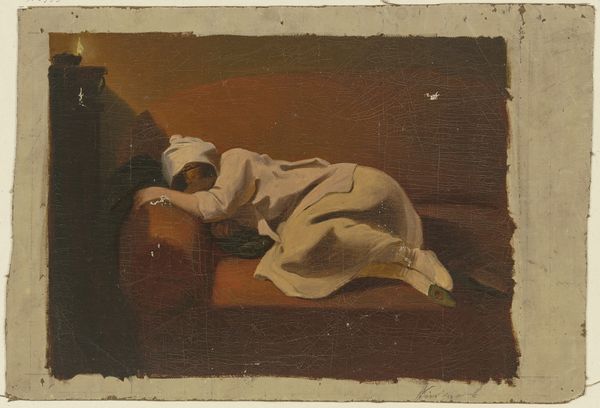 Theodoros Rallis made this evocative oil painting, Resting Greek Girl. The artist’s hand is evident in the loose, painterly brushstrokes, particularly in the background. Rallis builds up layers of earth-toned colors, creating a sense of depth and texture. In contrast, the figure is rendered with softer, blended strokes that capture the delicate quality of her repose. Looking closely, you can see how the fabric of her clothing is depicted: the texture of the woven cloth, the play of light and shadow, and the way it drapes over her form. The artist’s skillful handling of the oil paint, a common material, imbues this scene with a sense of lived reality. Beyond its aesthetic qualities, the image may also touch on themes of labor and leisure, inviting reflection on the relationship between the painting and the broader social context. Through these material choices and skilled execution, Rallis blurs the lines between fine art and craft, prompting us to consider how modes of production and social issues are conveyed through art.