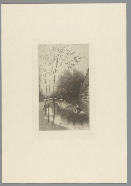 Louise Danse created this print of a farm by a bridge over a wide ditch, using etching. Though undated, this work emerges from a fascinating moment in the history of Dutch art. The late 19th and early 20th centuries saw the rise of the Hague School, a group of artists who turned away from grand historical themes to focus on the everyday life of the Netherlands. They favored rural landscapes and scenes of ordinary people at work and play. Danse's etching, with its focus on a simple farm and its quiet, watery setting, fits squarely within this tradition. It reflects a broader cultural interest in the beauty of the Dutch countryside and the lives of its inhabitants. This aesthetic appreciation helped to shape a national identity tied to the land and its traditions. To understand this work more deeply, we might research the art market and exhibition spaces of the Netherlands at the time. These institutions played a key role in shaping artistic tastes and promoting particular visions of Dutch identity.