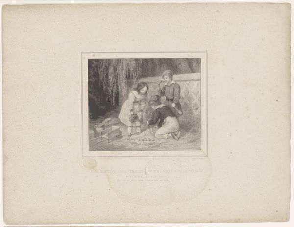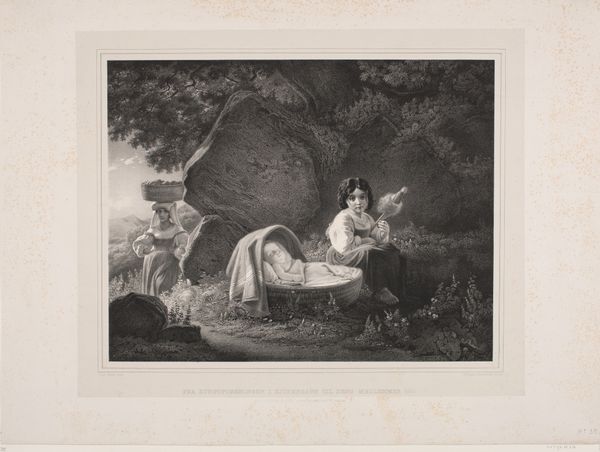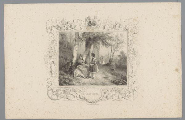 This lithograph, by the Belgian artist Théodore Fourmois, depicts two well-dressed women looking at an album while sitting on a bench in a landscape. The image invites reflection on the social and cultural significance of the art album in 19th century Europe. The creation and viewing of albums was a popular activity among the middle class. The albums provided women with an acceptable artistic outlet, as well as reinforcing social bonds. The woman on the left has her arm on her friend's back, showing us the intimate connection between the women. The presence of this particular image in a national collection like the Rijksmuseum speaks to how tastes change over time. Something once seen as a domestic craft can, centuries later, be recognized as an important piece of cultural history. Historians of art and culture use a wide range of resources to gain insight into images like these, including period guidebooks, etiquette manuals, and even examples of the albums themselves.