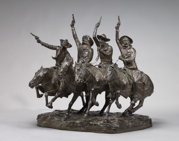 Frederic Remington made "The Old Dragoons of 1850" in bronze, sometime before 1909, and the way he's worked the surface makes it feel like a fleeting moment, caught in time. What's interesting to me is how Remington uses texture to create a sense of movement. See how the horses’ manes and tails are rough and uneven? The way he’s handled the bronze gives everything a kind of dynamism. It’s like the whole sculpture is breathing, charging forward. Then, notice how the faces and hands of the riders are much smoother. This contrast brings a focus to the human element amidst the chaos. Take a look at the horse in the very front. The way its legs are extended, and the tension in its body. That one gesture really captures the energy of the whole piece. It feels like Remington wasn't just depicting a scene, but trying to convey the feeling of being in the midst of it all. I am reminded of Degas and his bronzes of horses. They both looked for ways to record movement and dynamism.