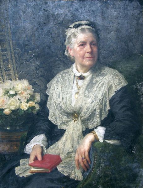 Curator: Raimundo de Madrazo's portrait of "The Marchioness of Perinat," completed in 1891, presents a fascinating glimpse into the era's high society. Editor: It's immediately striking, isn’t it? The somber palette against the deep crimson backdrop lends an almost theatrical air. The subdued emotion really holds you captive. Curator: Indeed. Observe how Madrazo masterfully juxtaposes textures—the luxurious sheen of her silk gown, the delicate embroidery, and the subtle rendering of her aging face. There's a deliberate use of light and shadow. Editor: Yes, and how does the sitter’s social positioning inform our viewing of this portrait? Her black attire might speak of mourning or perhaps of a more severe, conservative persona aligning with societal expectations. Curator: Considering its presentation at the Prado Museum today, we could even argue that it transcends individual representation to reflect the aristocratic values of that time, solidified within the national narrative through art. Her composed demeanor and the sumptuous surroundings broadcast the status associated with her lineage. Editor: To me, her expression suggests a complex individual, far beyond just aristocratic stoicism. You sense the layers of life experience, and perhaps also the limitations imposed upon her gender and social standing at the end of the 19th century. The artist succeeds to capture something intangible here, doesn't he? Curator: Absolutely, and beyond a personal record, the portrait allows an examination of class structures and ideals around femininity. What were the performative elements for women of stature within the complex socio-political conditions of Spain at this period? Editor: That really gets you thinking! It shows how seemingly straightforward depictions, especially from the Realist and Academic traditions, carry heavy implications. Curator: Very true, it is more than what first meets the eye. It is through its subtle interplay of elements, this image provokes deeper contemplations on power, representation, and time itself. Editor: Yes, and these paintings like this help make visible how people understood those structures. I appreciate your input here today.