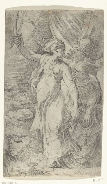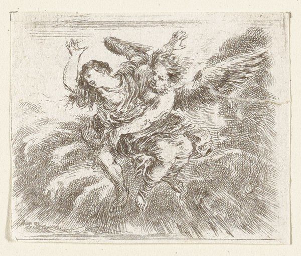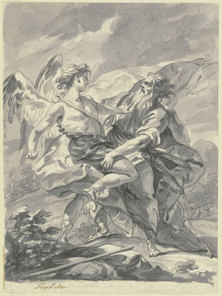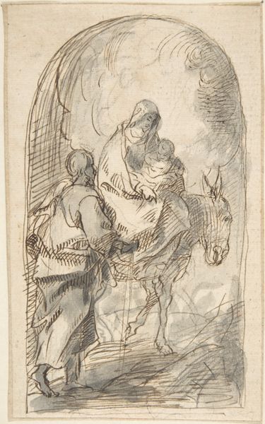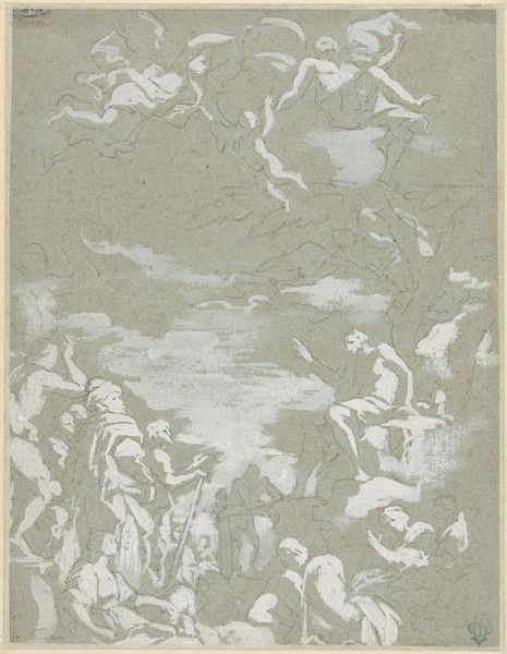 Giovanni Andrea Ansaldo created Maria met het kind en de Heilige Anna using pen and brown ink, with brown wash, heightened with white, on blue paper. This work isn't just a drawing; it's a demonstration of skill, employing techniques honed through years of practice and an understanding of materials. Look closely, and you will notice that the blue paper serves as a base tone, allowing Ansaldo to build up the image with contrasting brown ink and washes. The white heightening adds highlights and volume, creating a dynamic interplay of light and shadow. This wasn’t just about depicting a religious scene; it was about showcasing the artist's mastery of his medium. Such skilled drawings were highly valued, serving as preparatory studies for larger works, or as independent works of art, collected by connoisseurs. The layering of materials and the finesse of the linework tell a story of artistic labour, connecting the artwork to wider social and cultural values. Thinking about materials and making helps us to appreciate the expertise involved, questioning the traditional separation between fine art and craft, and understanding the significance of artistic practice.