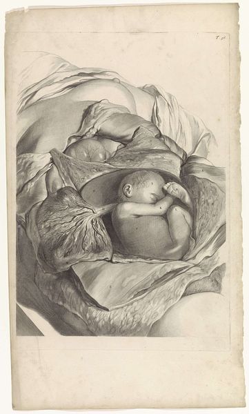 Editor: This pencil drawing, “Anatomical study of the exterior of the uterus of a pregnant woman,” created around 1685 by Pieter van Gunst, is… intense. The level of detail is astounding, almost unsettling. What context can you provide to understand why such an image was created and displayed? Curator: Indeed, it's striking. Remember that 17th-century anatomical studies were produced for scientific advancement, of course, but also circulated within elite circles interested in natural philosophy. Such depictions, while perhaps jarring to modern eyes, played a vital role in shaping medical knowledge, influencing social attitudes towards women's bodies, and, crucially, demonstrating male mastery of the human form. Do you see any markers of power here? Editor: Well, the woman's body is completely exposed and opened up. The cold, clinical nature feels detached from the reality of pregnancy and childbirth. Is it typical for art depicting pregnancy to have such an impersonal tone? Curator: The impersonal tone isn’t entirely surprising. The work reflects a specific desire to understand anatomy through observation and documentation. The political act of such drawings at this time lies in visualizing and dissecting the female body and understanding and teaching how life occurs, a male-dominated area of study. This contributed to excluding women from possessing similar scientific and artistic agency. Notice how the drawing also idealizes, perhaps even aestheticizes, the internal form, despite its graphic nature. Editor: That's a powerful point about the intersection of scientific study and social control. I never would have considered that by only men drawing anatomy they could have agency over a women's form. So much to learn! Curator: Exactly! Consider this image as a lens through which to examine shifting power dynamics and knowledge production during that period. We also have to wonder who the audience was for this drawing, and why such explicit scientific drawings of pregnancy would be for display at the Rijksmuseum. Editor: I learned how medical advancements intersect with existing power dynamics. This pencil drawing serves as an historical document which illustrates both the social power and the political context in seventeenth century Europe. Curator: And for me it is interesting to see this image as an influencer in how modern day gynecologists visualize the womb, especially while operating in a field still dominated by men.