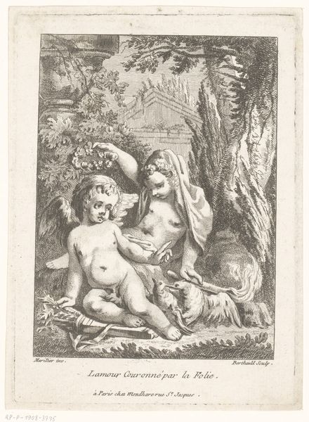 This Allegorical Portrait of Dorothea Emerentia von Canitz, née von Arnim, was created by Simon Fokke. The sepia drawing presents a bust of Dorothea adorned with a laurel wreath, flanked by allegorical figures, cherubs, and symbols. Note the careful arrangement of figures within the frame that conveys a sense of elevated status and moral virtue. The composition is structured around the central bust, with the flanking figures serving as vertical supports. The cherubs at the bottom, holding emblems, ground the piece, while the radiant light behind the bust elevates the subject. Fokke’s sepia wash creates a subtle tonal range, adding depth and volume to the otherwise linear quality of the drawing. Such detailed and allegorical portraiture, common in the 18th century, was created to not only capture likeness but also communicate philosophical and social ideals. The strategic placement of classical and Christian symbols signifies the virtues and status associated with the sitter. Ultimately, it’s a sophisticated interpretation of a person through carefully constructed symbols.