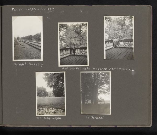 Editor: Here we have Berti Hoppe's "Bezoek aan Parijs en Brussel," created between 1932 and 1935. It's a gelatin-silver print featuring several photographs reminiscent of postcards, each capturing different landmarks. I find the collection a bit melancholic, evoking a personal, perhaps lonely, journey. What catches your eye, or how do you interpret this collection of images? Curator: This work resonates with themes of displacement and identity that were quite prevalent during the interwar period. The curated presentation, resembling a personal travel album, begs the question: Whose journey is being documented and for what purpose? Considering the rise of fascism and political instability during this period, could this "Bezoek aan Parijs en Brussel" be viewed as a quest for belonging or an attempt to define oneself amidst societal upheaval? What feelings does the artist try to evoke here by portraying public places with only very few people? Editor: That's fascinating. I hadn’t considered the political context so directly. I was mostly reacting to the emptiness of the spaces. Your framing encourages a deeper look into the sociopolitical motivations that influenced Hoppe's choice of subject and composition, especially in these iconic, but relatively empty, spaces. I also wonder how being a woman influenced her outlook. Curator: Precisely. These are the critical questions. Consider also the photographer's gender. In a male-dominated field, how might Hoppe have been positioning herself through this very personal yet public display of photographic travelogues? Are we looking at a subversion, perhaps a claiming of space, both geographically and artistically, typically denied to women? Editor: That's a powerful point. Seeing it as a claiming of space recontextualizes my initial sense of loneliness into a sense of agency. Thanks to your expertise, I’m now considering the work in a vastly more complex, nuanced light. Curator: And that's precisely why art history must be in constant dialogue with contemporary theory. Artworks like these reflect broader historical and social struggles for recognition, identity, and, indeed, freedom. Looking at the historical roots provides new lenses for analysis.
