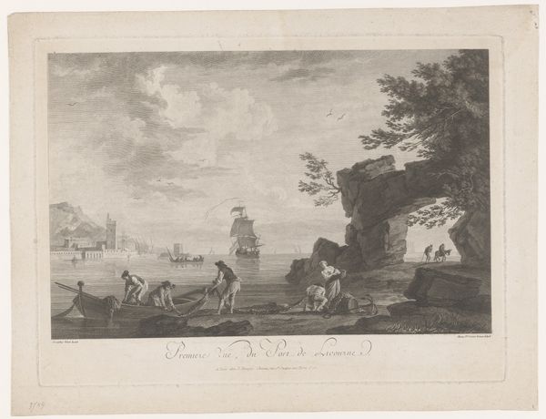 Richard Earlom's "Landscape with Lake and Men Building Ships" evokes a timeless scene of human industry set against nature. The axe, prominently wielded by a figure in the foreground, immediately grabs our attention. The image of an axe resonates deeply within our collective memory; a symbol of power and creation, but also destruction, echoing through the myths of Hephaestus and the forests of ancient lore. We see its reflection in rustic emblems and the heraldry of nations, reminding us of humanity's struggle to shape its environment. The psychological implications of the axe are profound. It represents the will to transform, to master the material world, yet it also carries a shadow of aggression and the potential for irreversible change. As we contemplate this image, let us reflect on the ever-evolving dance between human ambition and the natural world, a cycle perpetually renewed throughout history.