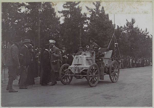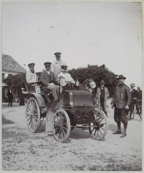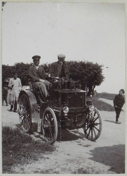 This small photograph by Delizy depicts a group of men gathered around an early automobile on a road in France. Without a precise date, we can still locate this image within broader social and institutional contexts. Note the attire of the men: top hats and tailored suits. This suggests the novelty of automobility was, at this time, primarily an activity for the upper classes. The photograph offers a glimpse into the dawn of the automotive age, when these complex machines required frequent maintenance, often performed roadside. The photograph itself also exists within a social context. The rise of photography as both a technology and an art form shaped how people documented and perceived the world. Delizy’s choice to capture this scene speaks to the fascination with modernity and progress that characterized the era. Historians consult a range of resources—from personal letters to technical manuals—to fully understand the complex relationship between technology, society, and art.