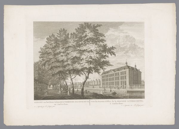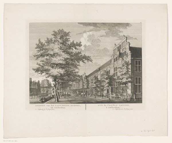 Editor: This is "Gezicht op de Botermarkt in Amsterdam," or "View of the Butter Market in Amsterdam," an engraving dating from 1774-1783, by Caspar Jacobsz. Philips. I find it interesting how the artist captured everyday life through what appears to be an inexpensive and widely accessible medium, a print. What are your initial thoughts on the materiality and accessibility of this work? Curator: The choice of engraving is critical. It signifies a shift towards broader consumption of imagery. Think about the implications: mass production, accessibility to a wider audience beyond the elite. This print served a different social purpose than an oil painting displayed in a wealthy home. We need to consider what meanings and messages the piece conveyed, not just to an individual patron but to a collective viewership engaging with the public spaces represented within. Editor: That's fascinating. It's not just about *what* is shown but *how* it's distributed. Does the depicted marketplace also offer insight into the economics of the time? Curator: Absolutely. Marketplaces were hubs, where agricultural goods and materials intersected. What does it tell you that it’s being recorded, produced, and commodified as an image for purchase? The details of labor, the types of goods traded – all indicators of Amsterdam’s position in a global network. This market’s very architecture is materialized power. What might its placement and size suggest? Editor: Perhaps its grandeur implies the market's, and by extension Amsterdam’s, economic strength and importance. Curator: Exactly! Considering all the raw materials available through trade. These processes of extracting resources from around the world and turning them into goods in the city are integral to how Amsterdam created value. The print is but another example. So this print helps us rethink what the term landscape could mean. Editor: It certainly prompts a much broader way of interpreting the landscape through economic and material relationships. Curator: Precisely. And that the act of producing and consuming such imagery shaped people’s understanding of place and commodity in profound ways.