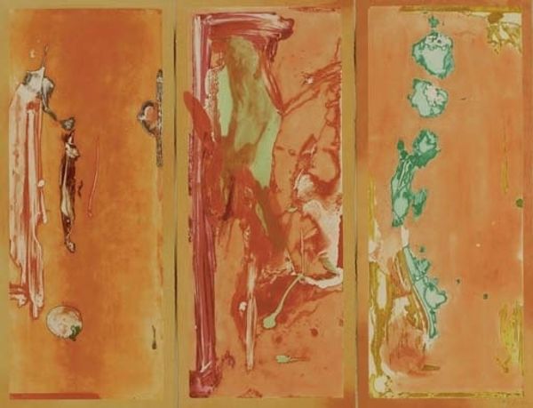 Arshile Gorky made this untitled oil painting sometime in the 1940s. There's a real sense of digging in here, of trying to find a picture through the act of painting itself. The surface has this scrubbed, almost anxious feel, like Gorky is wrestling with the orange ground. Check out the forms – they're not quite figures, not quite objects, but something in between. That green patch, for example, is it a floating island? A strange, biomorphic shape? And the way he layers the paint, thin washes next to thick daubs, creates a tension that keeps the eye moving. It’s like a conversation, a back-and-forth between intention and accident. This piece reminds me a bit of Joan Miró's playful abstractions, but with a darker, more melancholic edge. Gorky's always felt like a bridge between Surrealism and Abstract Expressionism, and you can see that struggle and searching here, a restless energy pushing the boundaries of what a painting can be.