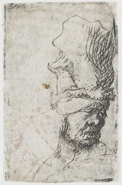 Curator: This is Joseph Highmore's "Sketch of a Child’s Head and of a Man on Horseback," currently residing in the Tate Collections. The dimensions are roughly 229 by 333 millimeters. Editor: Immediately, I'm struck by the stark contrast in scale and subject—the monumental child's head versus the more diminutive figure on horseback. It feels almost dreamlike. Curator: Indeed. Highmore lived during a time of great social stratification. I see in this juxtaposition a representation of innocence juxtaposed with power—perhaps the child represents the potential for a more equitable future, dwarfing the established authority. Editor: Or perhaps Highmore is simply exploring the formal possibilities of composition. The fluidity of line, the economy of means—it’s a study in contrasting forms and textures. Curator: I think there's more to it than mere form. Look at the child's expression—it’s knowing, almost challenging. This isn’t just a study; it's a statement about the world Highmore inhabited. Editor: I still think that the composition is so compelling! Curator: Ultimately, the sketch serves as a reminder that art can be both beautiful and politically charged. Editor: And that its beauty can be a political charge.