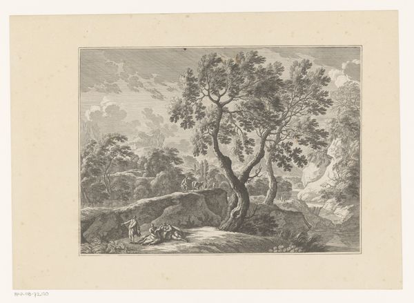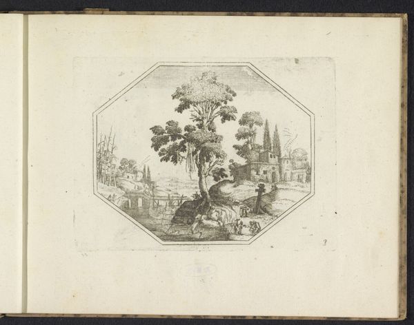 This landscape scene with Saint Roch was produced by an anonymous artist as an engraving, a printmaking technique that depends on focused labor. The process begins by incising a design onto a metal plate, typically copper, using a tool called a burin. This requires considerable skill and control, as the depth and angle of the cuts determine the thickness and darkness of the lines in the final print. The plate is then inked, and the surface wiped clean, leaving ink only in the engraved lines. Finally, a sheet of paper is laid on the plate, and both are run through a high-pressure printing press. The resulting image possesses a distinctive graphic quality, with sharp, precise lines and a rich tonal range. Because the matrix can be re-inked, it allows for the reproduction of identical images. In its day, prints like this allowed for the relatively inexpensive circulation of devotional imagery, connecting the faithful across great distances. The intense labor of the engraver stands behind this quiet image.