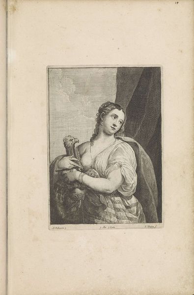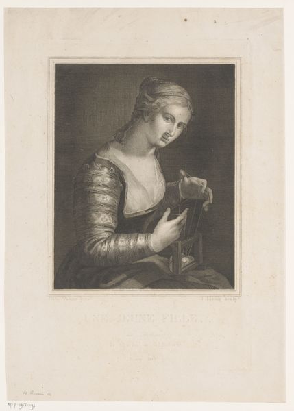 Editor: Here we have Lucas Vorsterman II's "Portret van een jonge vrouw (Violante)," an engraving from 1660 housed in the Rijksmuseum. It's striking how delicate and somber the young woman appears, especially rendered in such precise detail through engraving. What are your thoughts on this portrait? Curator: It’s fascinating how Vorsterman captures this young woman, situating her within the Baroque era’s complex power dynamics. The female portrait in this era wasn’t simply about likeness. It negotiated identity, often within very patriarchal frameworks. The slight downturn of her gaze, her exposed chest— these were deliberate choices. What do they communicate about female agency, or the lack thereof, in representing women in 17th century Europe? Editor: I hadn't considered the politics of portraiture at the time. I was mainly drawn to the aesthetic qualities. Are you suggesting that her pose and dress are not just about beauty, but also about control? Curator: Precisely. The male gaze is implicit here. It is through whose eyes is she being presented? And more crucially, who benefits from this image? Considering her name "Violante" alludes to ideas around virtue. How does this interplay with our contemporary understanding of consent, autonomy, and representation? It really invites critical engagement. Editor: That’s a powerful perspective. I was focusing on the technical skill of the engraving, but seeing it as a statement about the woman’s position makes it so much more complex. Curator: It is in that complexity, where we can critically examine art history alongside social constructs, that it becomes incredibly engaging. Hopefully, this provides an opening for dialogue about this representation. Editor: Absolutely, thank you for illuminating the deeper cultural implications behind the beauty of Vorsterman's work!