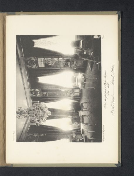 Curator: Hector Heylbroeck gifts us with this view, dating from before 1894. It's titled "Grote slaapkamer op de eerste verdieping van Hotel Merghelynck in Ieper, België" – "Large bedroom on the first floor of Hotel Merghelynck in Ypres, Belgium" for those of us without Dutch. This photogravure captures a world suspended, like a stage set before the play begins. Editor: Ghostly, isn't it? It's all right angles and ornate trimming. The room looks like it’s holding its breath. A grand stage, but utterly empty. Like an invitation and a warning all at once. Curator: Indeed. The photograph itself takes on the aspect of an almost spectral preservation of the Belle Époque. Notice how the lines of the paneling pull your eye towards an unseen space just beyond the frame. It teases with notions of hidden passages or perhaps untold stories echoing within those walls. Editor: Oh, definitely feels haunted, but beautifully so. I'm struck by the almost aggressive lack of color. Every shadow, every nuance in the plasterwork is a deliberate choice, forcing you to confront the composition directly, like a stern mother. It makes me think about purity and restraint. Is the all-white room designed for quiet reflection or sterile surveillance? Curator: Maybe a little of both. Purity in design mirroring purity of intent – though in reality those concepts rarely align, do they? White signifies new beginnings, erasing the old and hinting at what the future might contain. Also consider how the eye craves focal points, meaning becomes even more precious, everything present takes on additional gravity. Editor: So true! The absence almost becomes the symbol. In that way this pre-1894 space is strangely present for the future—now for us—an echo of lost meanings looking to be reborn. And as time passes, these questions transform as much as the photo is fixed, revealing a story larger than the room itself. Curator: I hadn't considered it like that, but you're quite right. What seemed frozen suddenly flows into ever changing interpretive forms. Editor: It’s wonderful, isn't it?