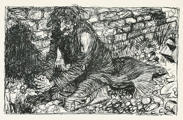 Ernst Barlach made this compelling woodcut, "The Writing Prophet," and you can almost feel the physical act of carving that black ink away from the block. I love that Barlach used this pretty brutal medium to depict Saint John, hunched over, wrestling with revelation. The stark contrast between black and white creates a kind of emotional intensity, right? Look how the parallel lines, almost like waves, define the ground and the background, pushing the figure forward. Then, there's that hand, so meticulously rendered, clutching the paper. It's like the whole image hinges on that point of contact, the physical struggle to translate the divine. You know, it reminds me a little bit of Käthe Kollwitz, that same commitment to portraying the weight and grit of human existence, but with a touch more... I don't know... maybe anxiety? Art is, if nothing else, an ongoing conversation, right? A dialogue where certainty is always suspect, and the best we can do is keep questioning.