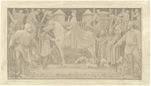 Willem Frederik Vinkenbos created this relief with a scene from the Eighty Years' War sometime in the 19th century. Its monochromatic rendering gives it the aesthetic qualities of a photograph. Yet, it is far from a neutral recording. Instead, it is a stage. The scene is formally divided between those departing by boat on the left and those left behind on the right. In the Eighty Years' War, from 1568 to 1648, the Dutch fought for independence from Spain. The formal symmetry of the artwork underscores the idea that both sides experienced a deep sense of loss. Note how the artist used a high degree of relief to bring the figures forward, creating a sense of drama and immediacy. The linear nature of the waves juxtaposed with the rounded figures creates a contrast. Ultimately, this relief invites contemplation on the universal and enduring themes of conflict, displacement, and the shared human cost of war. It leaves us to ponder the complex interplay between form, content, and historical context.