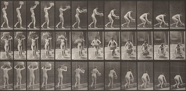 Eadweard Muybridge created this photographic study, Plate Number 155. Jumping, running straight high jump, to dissect and understand the mechanics of human motion. The sepia tones lend the work a scientific formality, while the grid-like composition presents the subject as an object of study. Muybridge’s work is fascinating for its blend of art and science. By capturing movement in discrete frames, he challenges our perception, breaking down continuous action into a series of static moments. This process destabilizes our intuitive understanding of motion, inviting us to consider it as a sequence of positions rather than a fluid transition. Ultimately, the arrangement of these images in a grid pattern invites semiotic interpretation, each frame functioning as a sign that, when viewed in sequence, generates the concept of ‘movement’. It’s a dance between stillness and motion, challenging fixed ideas and inviting us to reconsider our understanding of time and space.