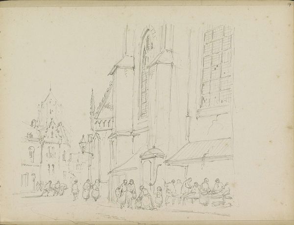 Editor: This is "Sketch of a cityscape" by Adrianus Eversen, sometime between 1828 and 1897, created with pencil on paper. There's a tentative, almost fragile quality to the drawing... What draws your attention when you look at this sketch? Curator: What strikes me is the way Eversen uses realism to document a specific place and time, yet also hints at broader social dynamics. Look at the details he chooses to include, the architectural styles—they tell a story about the values and power structures embedded in urban development during that period. Who was afforded visibility in that city? Editor: I hadn’t thought about it that way. It’s so easy to see just a pretty drawing of old buildings. Curator: Exactly! Eversen, whether consciously or not, provides us with a glimpse into a world defined by class and perhaps even exclusion. Consider, too, that the cityscape was also undergoing tremendous transformation. Is this drawing an act of preservation? Is it critiquing the speed and focus of capital interests at the time? Editor: So you're saying the sketch, even though it’s “just” a cityscape, can reflect the socio-political landscape? Curator: Absolutely. How do you see the absence of people influencing your reading? Does their erasure make the cityscape seem cold, clinical? How might this relate to the era's focus on industrialization and perhaps even a sense of alienation? Editor: That's a powerful way to look at it. I’m beginning to see how much historical context can be woven into even the simplest of images. Curator: Precisely. Art is never created in a vacuum; it reflects the values and contradictions of its time, offering insights into both the visible and the invisible forces shaping society. We are left to wonder about all of the individuals whose stories are not captured.