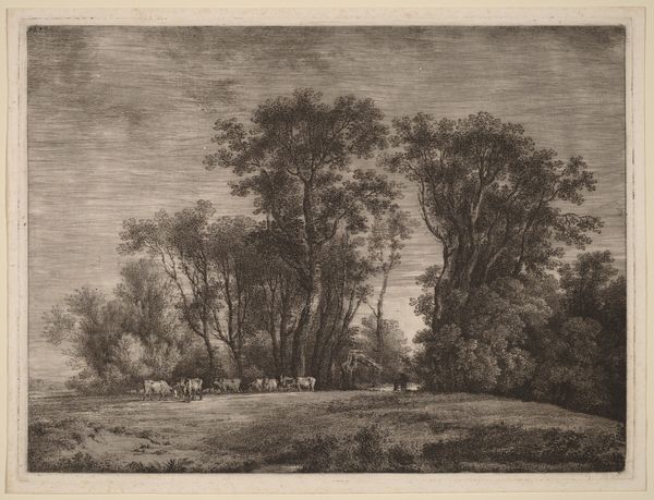 François Louis Thomas Francia created this landscape drawing, now held at the Minneapolis Institute of Art. Born in France during a period of immense social upheaval, Francia navigated the shifting political landscape of post-revolutionary Europe. His work reveals a tension between romantic ideals of nature and the realities of a rapidly industrializing world. Notice how the almost scientific precision of the foliage contrasts with the soft reflections in the water, offering a space for contemplation. Francia spent time in England, where he was influenced by the English landscape tradition, yet he maintained a uniquely French sensibility. This drawing captures a transient moment; it invites us to consider how our relationship with the environment is shaped by our cultural identities and personal experiences. "Wooded Landscape" presents an opportunity to reflect on our place within the natural world.