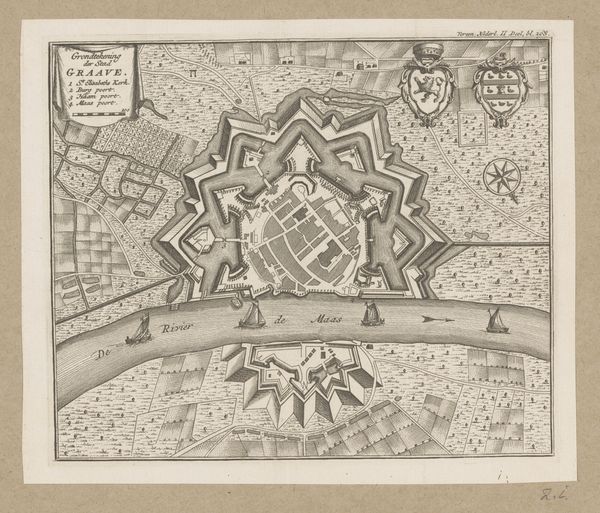 Curator: What a beautifully rendered city! This is an engraving from 1733, titled "Plattegrond van Milaan," which translates to "Map of Milan," attributed to an anonymous artist and currently held in the Rijksmuseum. The primary materials are ink and engraving. Editor: The detail is just astounding. Look at the fineness of the lines, it evokes a real sense of place, though almost too orderly for how I imagine the lived reality. It's all so meticulously planned. Curator: Indeed. Consider the labor involved in creating something like this, a product both artistic and utilitarian. The printing process itself—etching the design into a plate, applying ink, and pressing it onto paper—would have required significant skill. Think also of the paper's production, where does it originate? Editor: And this map certainly served a social and political function, it wasn’t just decorative. A plan like this would’ve been critical for civic administration, urban planning, and likely military strategy. I imagine the political elite of the city poring over it, using it to control and understand their domain. Notice the walled fortification! Curator: Precisely. The image reinforces power dynamics through the very act of representation. Furthermore, let’s acknowledge its value as a commodity, a tradable object reflecting the wealth and standing of Milan during this era. Its aesthetic qualities were always inextricably intertwined with economics and social capital. The ink's composition, even! Editor: It makes you wonder how widely circulated this image was. Would ordinary citizens have ever laid eyes on it? Or was its access strictly limited to governing bodies, architects and landowners. That would dramatically shift how we consider its public impact and its contribution to Milanese identity. Curator: Ultimately, even in its two-dimensional form, it serves as a reminder of the processes of construction and production that go into creating a built environment, from the design phase all the way to printing, distribution and application. Editor: Looking closely, it’s a powerful testament to the aspirations of a city and, crucially, an index of who holds power in the public sphere.