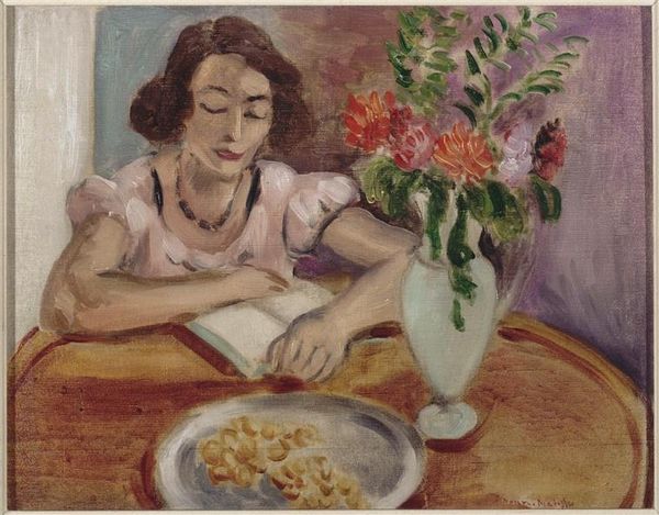 Henri Matisse made this painting of a Woman Reading with Peaches. He’s conjuring up the scene with visible brushstrokes, and a palette that’s bold but still feels natural. There’s something so tactile about the way Matisse applies paint here, you can almost feel the bristles of his brush. The colors are laid down in distinct strokes, creating texture and depth. Look at the background, those broad strokes of green and pink that suggest foliage. It’s not about photo-realism; it’s about the physical act of painting. The yellow of her dress leaps out and contrasts against the darker, flatter tones used for her hair. And the peaches! They’re not just props; they’re juicy, tangible forms rendered with the same loving attention as the woman herself. It reminds me of how much painting is just problem solving, a continual conversation between color and form. It’s an approach shared by other painters like Bonnard, whose interiors vibrate with color and light. Ultimately, Matisse invites us to embrace the pleasure of looking and reminds us that art thrives on ambiguity.
