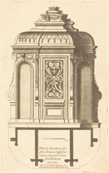 This drawing of a Buffetkast was made by Léon Laroche, but we don't know exactly when. It’s rendered in a muted palette, mostly pale browns and grays, which gives it a soft, almost dreamlike quality. The linework is incredibly detailed. I’m drawn to the ornate carvings on the doors. Notice how each tiny flourish and curve is carefully delineated, creating a sense of depth and texture. The subtle shading really emphasizes the three-dimensionality of the piece, giving the illusion that the cabinet is emerging from the flat surface of the paper. If you look closely, you can see the artist's hand at work, the individual strokes that build up the form and create a sense of movement. Thinking about other artists, I’m reminded of Piranesi and his architectural fantasies. Laroche's "Buffetkast" shares this sense of boundless imagination and technical virtuosity. And, like all great art, it invites us to linger, to explore, and to discover new details each time we look at it.
