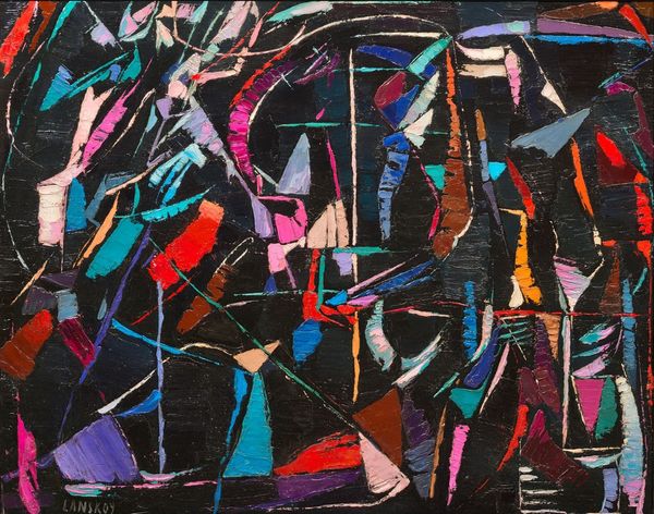 William Baziotes made “The Parachutists” with oil, conjuring these figures out of a patchwork of colour and line. Look at the surface, how the paint is layered, scraped back, and drawn into. There’s a sense of the artist feeling his way through the composition. The colours aren't mixed to perfection; they maintain their own distinct, raw energy. Focus on the black form in the centre. It has this lovely drippy quality. The black is applied thinly and allowed to run, creating these subtle gradations and textures. It’s almost as if he's letting the paint do its own thing, embracing chance and accident. It reminds me a bit of Gorky's biomorphic shapes, but with a more playful, less tormented feel. Ultimately, "The Parachutists" presents us with a space where things are not quite defined, but always in process, always becoming. A bit like art itself, really.