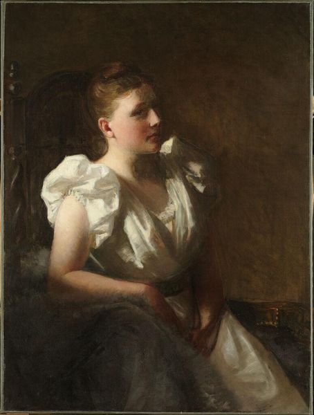 Thomas Eakins made this portrait of Mrs. William Shaw Ward using oil paints. The way he handled the material is really striking. Eakins didn't try to hide the fact that this is a painting. You can see the brushstrokes, the way the paint is layered on the canvas, and the muted colors. There's a sense of immediacy, as if we're watching him in the act of creation. This approach aligns with a broader movement in the late 19th century where artists embraced realism and a focus on everyday life. Instead of striving for an idealized image, Eakins captured the sitter's presence in a straightforward manner. Eakins's commitment to realism also speaks to his interest in the working classes and the impact of industrialization on society. His approach to paint is quite egalitarian, and he doesn't set out to impress. By acknowledging the labor involved in the production of the artwork, Eakins elevates the value of craftsmanship. He challenges traditional distinctions between high art and craft, emphasizing the importance of materials, making, and context in understanding the full meaning of an artwork.