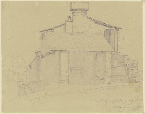 Editor: This pencil drawing, "Huis met een werkplaats in Brotterode," by Johannes Tavenraat, created sometime between 1840 and 1848, feels very intimate and straightforward. It shows the workshop and home in a realistic way. How would you interpret Tavenraat's depiction here? Curator: The bare, realist rendering itself speaks volumes. What does the image evoke in terms of memory? Note how the vertical lines, like linguistic glyphs, define architecture and human experience, rising as pillars that connect us to a cultural heritage. Editor: The lines feel… fragile? They create the space but are almost tentative. It doesn't feel monumental, even if architecture often is. Curator: Exactly. Note the interplay of shelter and exposure, the blurring between the safety of the domestic sphere and the uncertainty of labor. Consider the weight these timber structures bear, not only physical but also the metaphorical weight of livelihood, ancestry, and social status passed down like inherited heirlooms. What stories reside in these architectural forms? Editor: I hadn't considered it that way, but the wood does have a textural, lived-in quality to it. Curator: These are images of places filled with significance. They operate on an individual, intimate scale but reveal layers of broader meaning: survival, aspiration, and communal existence rendered in subtle, lasting marks. And that feels fundamentally human. Editor: It's interesting how the simplicity almost amplifies the possible meanings within it. Thanks! Curator: It's the symbols we must learn to read. This understated aesthetic highlights the intrinsic, quietly resonating power of human narratives.
