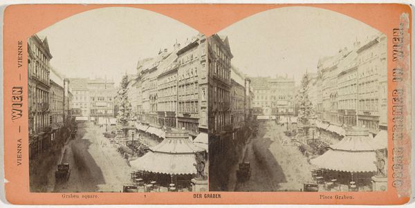 Editor: So this is "View of Naples from the harbor," taken sometime between 1861 and 1878, a gelatin silver print by Ernest Eléonor Pierre Lamy. It feels incredibly still, almost frozen in time, despite all the tiny figures bustling around. It's also a stereo image which is fun. What strikes you when you look at it? Curator: Well, isn’t it evocative? Like stepping into a faded memory. It speaks of grand tours and romantic ideals. You've got that cinematic backdrop – the city climbing the hillside topped by a medieval fortress! Think of the light… the dust motes dancing in the air as Lamy captured this bustling scene. Do you sense how he’s framing not just the city but a certain *idea* of Naples? Editor: I see what you mean! It's less about capturing the gritty reality and more about portraying an idealized version of this vibrant city. Is that what makes it Realism? Or something else? Curator: Partly. It also demonstrates meticulous detail - look at the rendering of the buildings, and the rigging of the ship. And it reflects the artist's *perspective*. I imagine Lamy positioning himself, camera ready, contemplating Naples spread out before him, thinking of its ancient roots and dramatic history. Maybe he even chuckled to himself! Don't you think this vista could feel very similar to Roman cityscapes of centuries prior? Editor: Definitely! I guess I hadn’t thought about how much intention goes into something that looks so... documentary. I really get a new appreciation for landscape photography. Thanks. Curator: My pleasure! Thinking about photography as both documentation *and* dreamscape is rather liberating. A double exposure of fact and fiction, if you will!