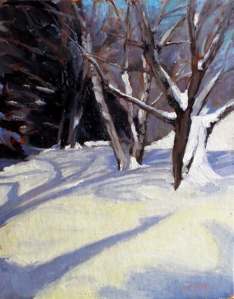Pekka Halonen painted this Sunlit Winter Landscape with oils, and I love the way he really dove into the process, the *making* of it. The texture is delicious; it's like he sculpted the snow with paint. Look at the blues and violets he uses for the shadows, and how they curve across the field like frozen waves. It reminds me of making snow angels as a kid, that feeling of pressing your body into the cold. Then there are these little hints of warmth – yellows and oranges – that peek through, promising spring is not too far away. It's so interesting to see how the painting embodies the conversation between different colours. It reminds me a little of Van Gogh, actually, someone else who wasn’t afraid to push paint around and let the process be visible.