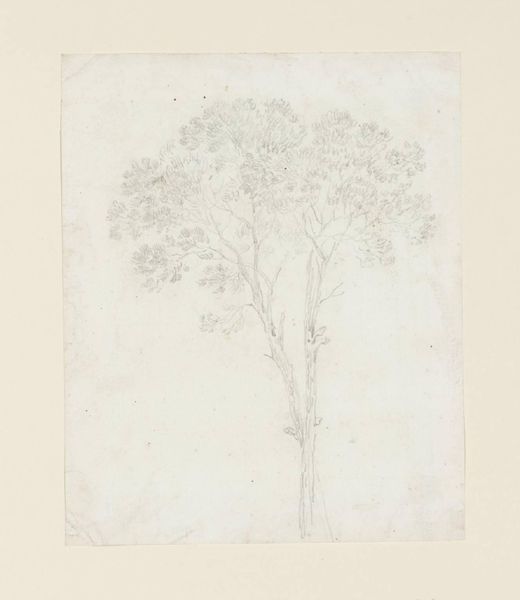 Curator: Richard Wilson’s "Tree Study," residing in the Tate Collections, presents us with a delicate sketch, its dimensions a modest 136 x 111 mm. Editor: It feels incredibly vulnerable, almost like a ghost of a tree. The lightness of the pencil and the unfinished quality really evoke a sense of fragility. Curator: Wilson's approach to landscape wasn't just about replication, it was about a careful manipulation of materials to evoke specific social and aesthetic ideals. The paper itself, its texture, and preparation, would have been carefully considered. Editor: Right, and we can’t ignore the socio-political context. Land ownership, enclosure, and the changing relationship between people and the environment were huge issues at the time. Could this study be a commentary on those themes? The tree feels so isolated. Curator: Possibly. Or it is simply an artist working within the established systems of patronage and production to make a living. The sketch itself is the commodity. Editor: Even so, the choice to depict a solitary tree, rendered with such delicacy, speaks to a specific way of viewing nature. Curator: Indeed, whether consciously or not, Wilson's methods and this particular piece invites a deep consideration of our relationship with the natural world, then and now. Editor: Absolutely. It reminds us that even simple sketches can contain complex layers of meaning.