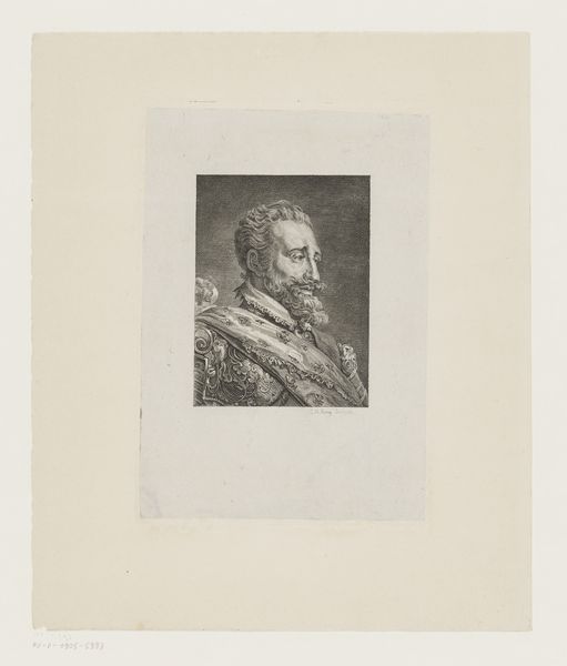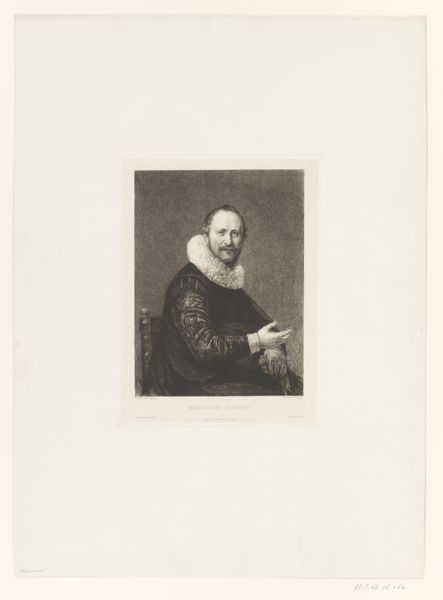 Curator: Here we have an engraving dating somewhere between 1850 and 1899, currently held at the Rijksmuseum. The piece is a portrait of Ludovico Ariosto. Editor: He looks like he’s pondering…perhaps debating whether or not to finally finish that epic poem! There's a gentle sadness about him, a sense of depth behind the eyes. It's quite arresting for a monochrome print. Curator: The image resonates with academic-art conventions; it serves as a formal representation befitting someone of Ariosto's literary stature, almost canonizing him. His influence shaped Italian Renaissance literature profoundly. We see this perpetuated even through prints like this one decades and centuries after his own time. Editor: Exactly, he's staged. Look at the subtle detailing of his sleeves—they almost seem more important than his face at first glance, all that swirling pattern. He is clearly staged to show wealth, status. One does wonder, does that accurately reflect the real Ariosto? Or the man Renaissance audiences imagined him to be? Curator: Prints like this one played a key role in circulating images of cultural figures across Europe. They allowed a much wider audience access than painted portraits that remained in private collections or aristocratic circles. These prints helped forge and solidify his lasting cultural memory. Editor: It's also intriguing how softened and dreamlike the whole image is given the precise nature of engraving. Almost as if memory itself has blurred the edges of our perception of the man. The print itself is very lovely, with such delicate gradations from light to dark. Curator: Indeed. Though presented as a portrait of an individual, prints of figures like Ariosto fulfilled a vital societal role in the 19th century, underscoring the significance of the past to cultivate national pride, a very relevant aspect in our contemporary reflections upon images from centuries past. Editor: Makes you think about the power of portraits doesn't it? They all create and preserve some version of reality, often subtly reshaped by whoever commissioned them, the artist, and certainly by the generations who interpret them afterward. Curator: Absolutely. Thanks for pointing out how it remains a piece made with deliberate societal objectives. Editor: Thanks. Seeing art like this always inspires me to go write or sketch… something.