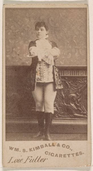 This small card, one of a series of many, was produced by the firm of Allen & Ginter to promote Virginia Brights Cigarettes. Printed on thin paper stock, it uses photographic imagery reproduced through industrial printing techniques. The image shows an actress, one of many collectible portraits packaged with cigarettes in the late 19th century. While seemingly inconsequential, these cards were part of a massive shift in the production and consumption of images. Photography, once a laborious process, was becoming increasingly mechanized, allowing for mass distribution. The photomechanical processes allowed for easy reproduction, democratizing access to portraiture and celebrity culture. These cards were essentially advertisements, linking the allure of fame with the pleasure of smoking. The actress becomes a commodity, her image serving to sell cigarettes. Though small and ephemeral, this card tells us a lot about the industrialization of image-making, and the emergence of a consumer culture driven by mass media. It challenges us to consider the relationship between art, commerce, and the construction of celebrity in the modern world.