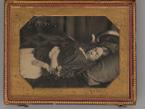 This is a post-mortem portrait of a young woman by Louis Sauvager. The girl is adorned with a crown and a heart-shaped symbol, likely the Sacred Heart of Jesus, a symbol of divine love and compassion. These symbols of purity and innocence can be traced back to antiquity. Consider, for instance, the funerary practices of ancient Rome, where wreaths of flowers symbolized the deceased’s virtue and eternal life. This motif resurfaces in Christian art, where halos and crowns denote saints and martyrs. The Sacred Heart, emerging later, embodies Christ’s sacrifice and boundless love for humanity. The heart, an ancient symbol of love, courage, and life itself, underwent a profound transformation, evolving from a secular emblem of earthly passion to a religious icon of divine affection. The persistence of such symbols reveals our collective subconscious need to confront mortality and seek solace in transcendent ideals.