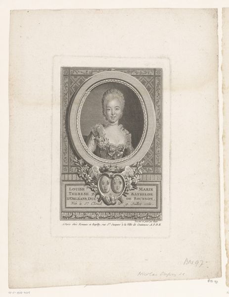 J. L. Benoist's "Marie Antoinette of Austria, Queen of France" is a study in contrasts. It is a small print with an understated gray color scheme, but it captures the essence of French royalty. Encapsulated in a perfect circle, Marie Antoinette is the focal point. Benoist uses this shape to highlight Marie Antoinette's features. The Queen's elaborate, feathered headdress draws the eye upwards, while her elegant gown balances the composition. The contrast in textures—from the smoothness of her skin to the intricate lace—adds depth and a sense of her presence. The circular frame, inscribed with text, creates a visual boundary, a space where the Queen is both present and isolated, which gives the engraving a deeper resonance, inviting viewers to contemplate the complexities of identity, representation, and power.