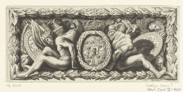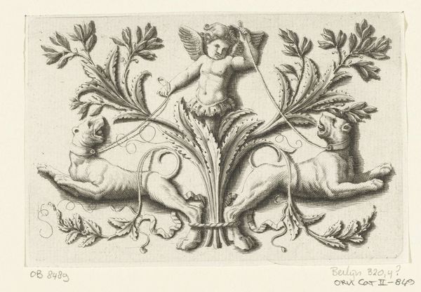 Editor: So this ink drawing, "Fries met kind en twee putti" by René Lochon, was made around 1651. It's teeming with figures and flourishes. It seems to suggest a certain type of opulence, perhaps connected with the elite? How would you interpret it? Curator: I see this piece as a fascinating window into the visual language of power in the Baroque era. The putti, the decorative frieze – they aren't just ornamentation. What about their association with themes of innocence, love, and even divinity? Consider how this drawing might function to legitimize the power of those who commissioned or collected works with similar themes? Editor: So the presence of these cherubic figures served almost as a kind of endorsement for those who owned or displayed it? Curator: Exactly! Think about the broader social context: the Dutch Golden Age, colonial expansion, and burgeoning mercantile power. These seemingly innocent images participated in constructing a narrative of wealth and moral justification for this new order. Are the putti then innocent, or are they figures implicated in these systems? Editor: It definitely complicates my initial view. I hadn’t really considered it in terms of its social function. Curator: This drawing invites us to think about the relationship between art, power, and ideology, even now. Do you feel this work serves today as a point of discussion about how we consume such artworks with critical attention? Editor: It makes me think about what values we project on it in the present day versus then. Thank you, this was an interesting view to have considered! Curator: My pleasure! Thinking critically is the goal of any artistic consumption, I'd say.