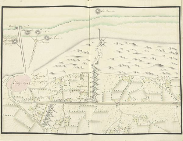 Curator: This etching by Stefano della Bella, created between 1647 and 1649, depicts the Battle of Hickelsmey near Kempen, which occurred in 1642. It’s a bird’s eye view. What are your first impressions? Editor: I'm immediately struck by the starkness, the monochromatic palette. It conveys a chilling detachment, as if we are viewing the battle not as participants but as clinical observers, almost like military cartography. Curator: That detachment, I think, is part of della Bella's style. It's all about the technical mastery here. Consider the precise, almost obsessive, rendering of the landscape and troop formations. This was produced via etching using pen and ink; what do you notice about the marks? Editor: The linearity is undeniable. Look at the regimented rows of soldiers, the geometrically arranged trees and buildings, creating an order out of chaos. It appears meticulously planned. The density of the lines suggests texture, almost evoking the mud and wear of the battleground. What about its historical production context? Curator: Della Bella's works often documented events and this one serves as propaganda. Consider its date of execution some years after the battle. His patronage was wealthy families, nobility seeking to cement their power and legacies. What the image communicates about power is that control, that meticulous rendering you mention. The production value served power! Editor: Yes, the visual encoding speaks of calculated power! This control serves the function of reinforcing dominance and social hierarchy of its commissioner through representation, while simplifying violence into legible forms. However, the image offers a beautiful compositional clarity, through those receding planes, the distribution of light and shadow and the sheer textural information offered via such limited material. Curator: I agree, formally, the work draws one in. As an object, it bears consideration because its aesthetic qualities are products of particular historical pressures to produce and convey very specific things about warfare in the 17th Century. Editor: Quite right. I find I keep circling back to the image and appreciating its clean presentation. Curator: For me, engaging with an image like this means analyzing how a battle transforms into a controlled visual document. That transition reveals a lot about power. Editor: Indeed, understanding these visual codes help unlock the political and aesthetic functions.